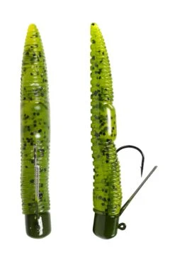 - Worm has a salt-impregnated body with a straight tail design and flat bottom, facilitating a natural gliding action.