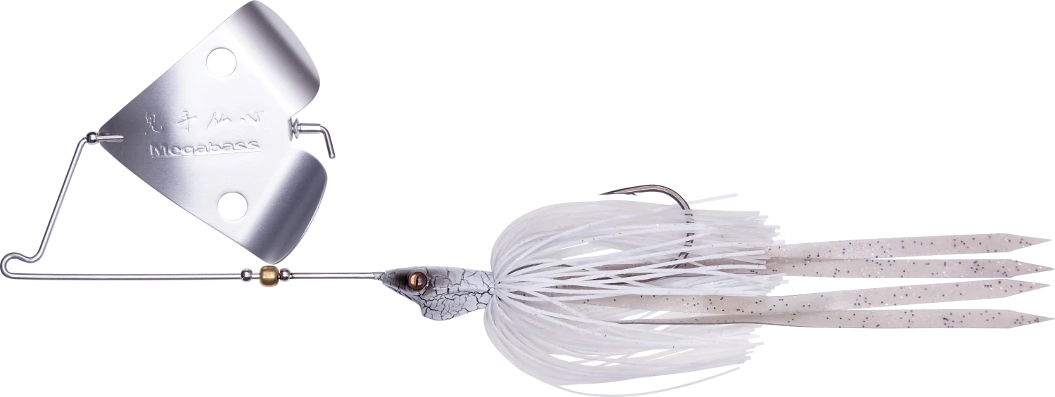 The Megabass Jamaica Boa is a 1/2 ounce wire buzzbait made with thick gauge stainless steel wire and a long silicone skirt. It has a head design that resembles a flat v with a slightly cupped mouth (see image below), which delivers nimble recoveries from deflections and an uncanny bushwhacking ability as it moves through vegetation, which